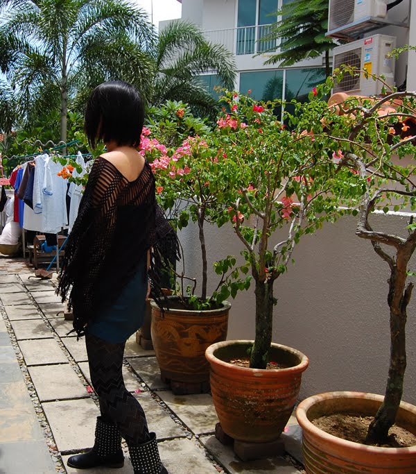 I got this knit cape thing from therobotninjas.com. Because I'm addicted to things with holes and fringes.